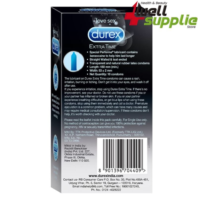 Durex Extra Time Longer Lasting Pleasure Condom -10Pcs Pack(India)