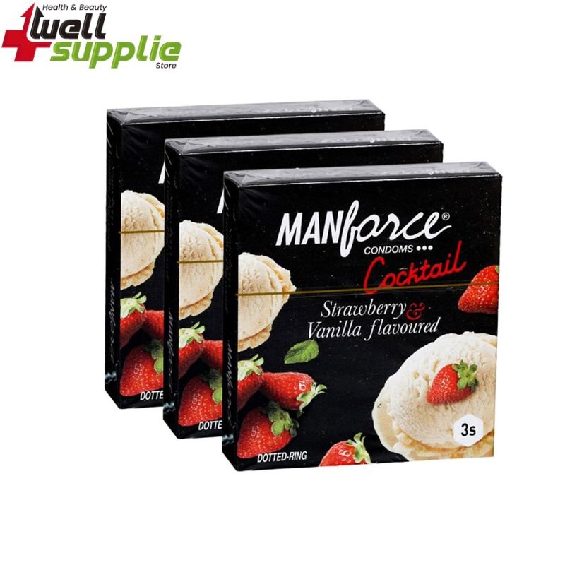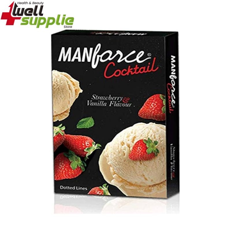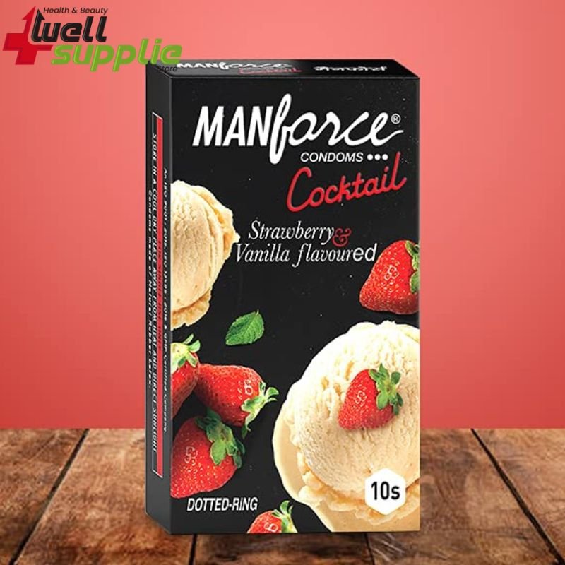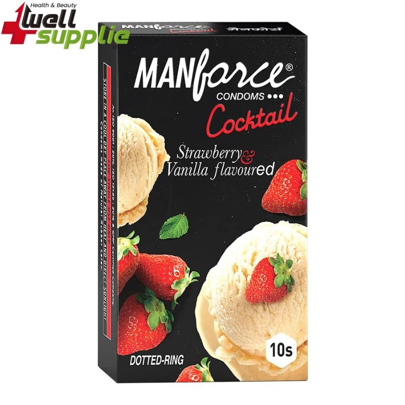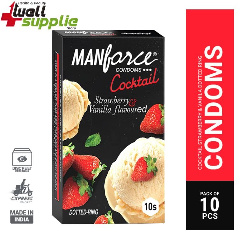 Manforce Cocktail Condom with Dotted Rings, Strawberry & Vanilla Flavoured- 10Pcs Pack(India)