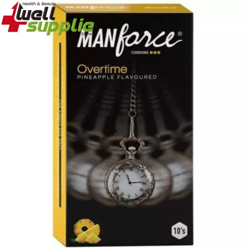 Manforce Overtime Pineapple 3in1 Condoms are specially designed to enhance intimacy and pleasure for both partners. Featuring a unique combination of ribbed, contoured, and dotted textures, these condoms provide an exciting and varied sensation. The condoms are also infused with a delightful pineapple flavor, adding a tropical twist to your intimate moments. Made from high-quality latex, they offer safety, durability, and comfort, with a special extended duration formula to prolong your pleasure.