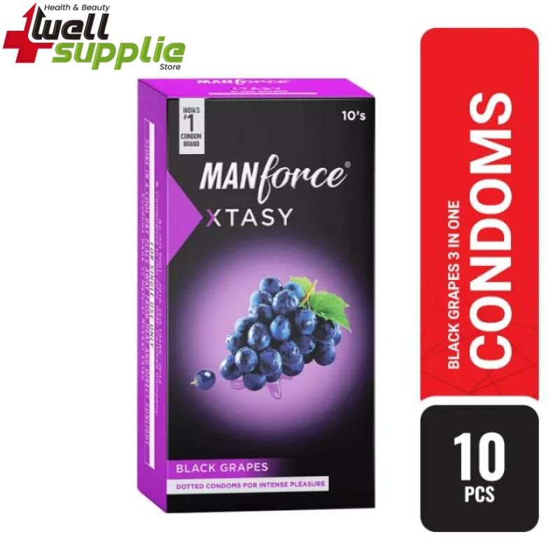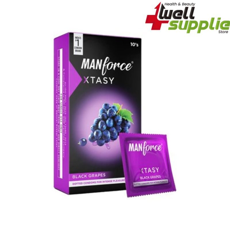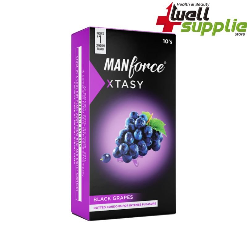 Manforce Xtasy Black Grapes Flavoured Dotted and Double Contoured Condom – 10Pcs Pack (India)