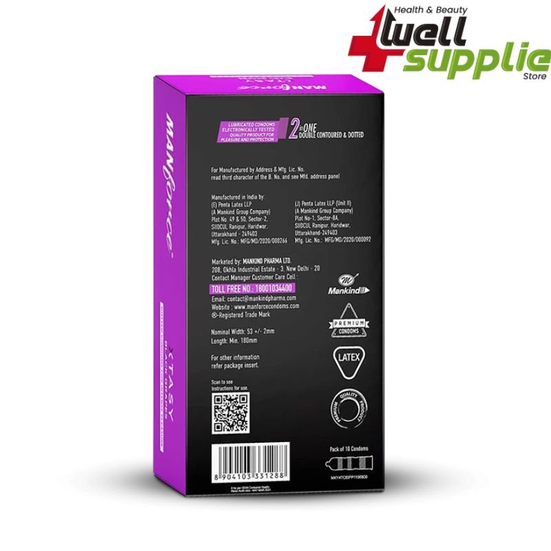 Manforce Xtasy condoms are designed to elevate your intimate moments with a unique blend of features. These condoms come with a dotted and double contoured texture to enhance pleasure and ensure a more stimulating experience for both partners. The enticing black grapes flavor adds a sensual touch, making intimate moments more enjoyable. Made from high-quality latex, these condoms are lubricated for smoother intercourse, providing both safety and comfort. Manforce Xtasy condoms are an excellent choice for those looking to spice up their intimate life while ensuring protection.