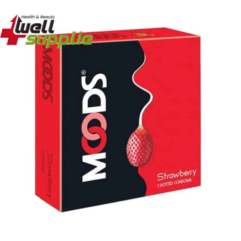 MOODS Strawberry Flavored Dotted Premium Condom – 3Pcs Pack