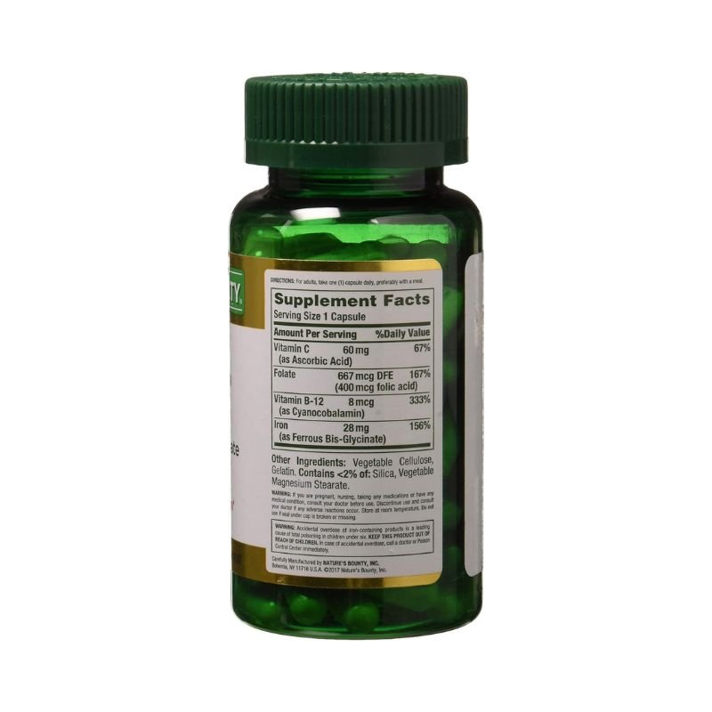 Vitamin C, folic acid, vitamin B-12, Iron, vegetable cellulose, gelatin, silica, vegetable magnesium stearate.