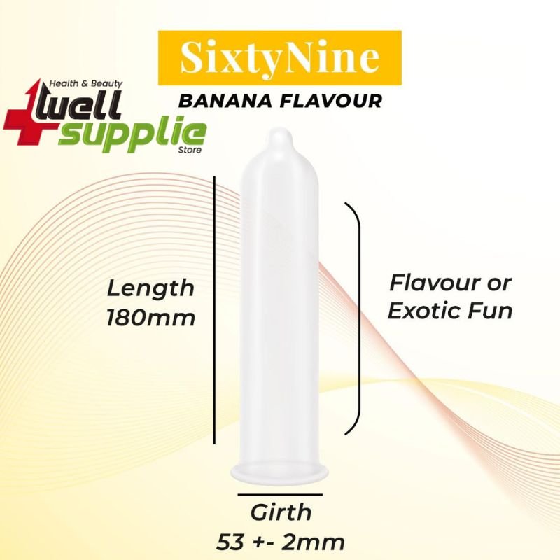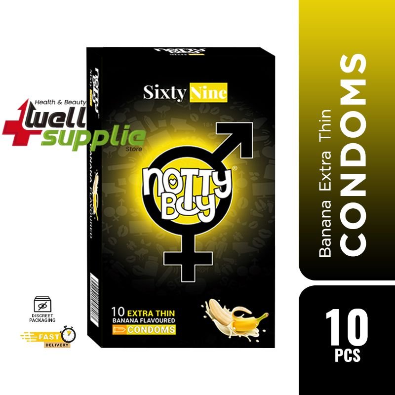 NottyBoy SixtyNine Banana Extra Thin Flavored Condoms are crafted to enhance your intimate moments with a combination of ultra-thin material and a delightful banana flavor. These condoms are designed to provide a more natural feeling while offering protection and comfort. The dotted texture adds extra stimulation, and the lubricant ensures smooth and enjoyable experiences.