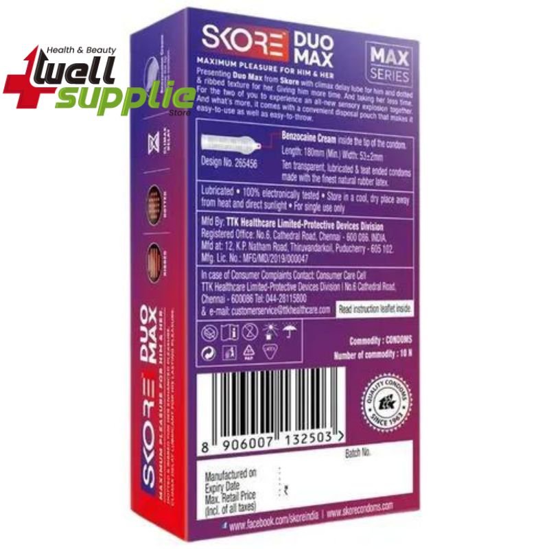 Skore Duo Max – Dotted & Ribbed Performa Lubricant Condom – 10 Pcs Pack