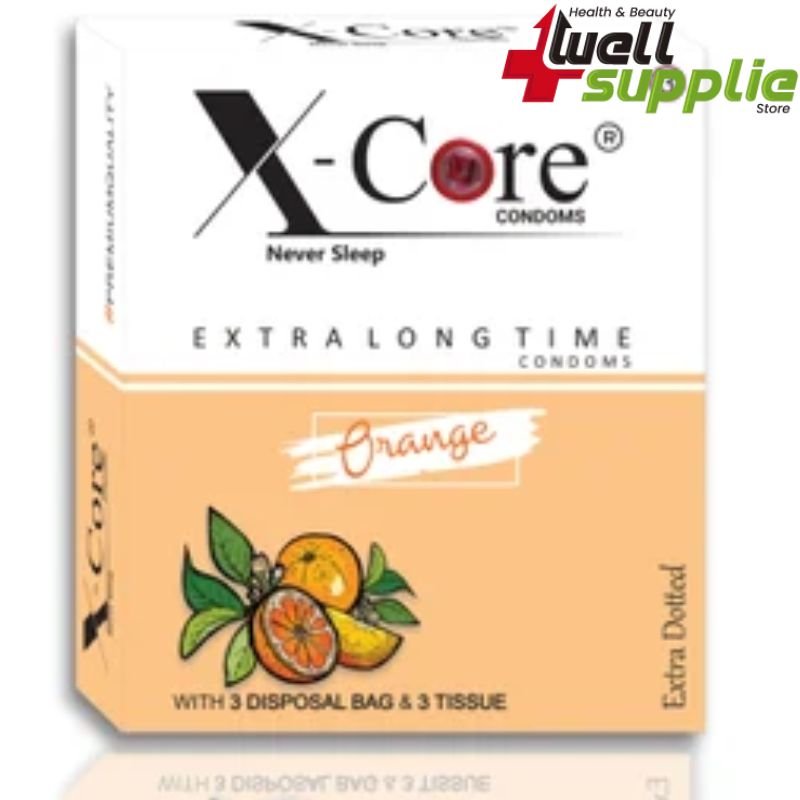 X-Core Extra Time Long Lasting Dotted Condom (Orange Flavored) - 3 Pcs Pack
